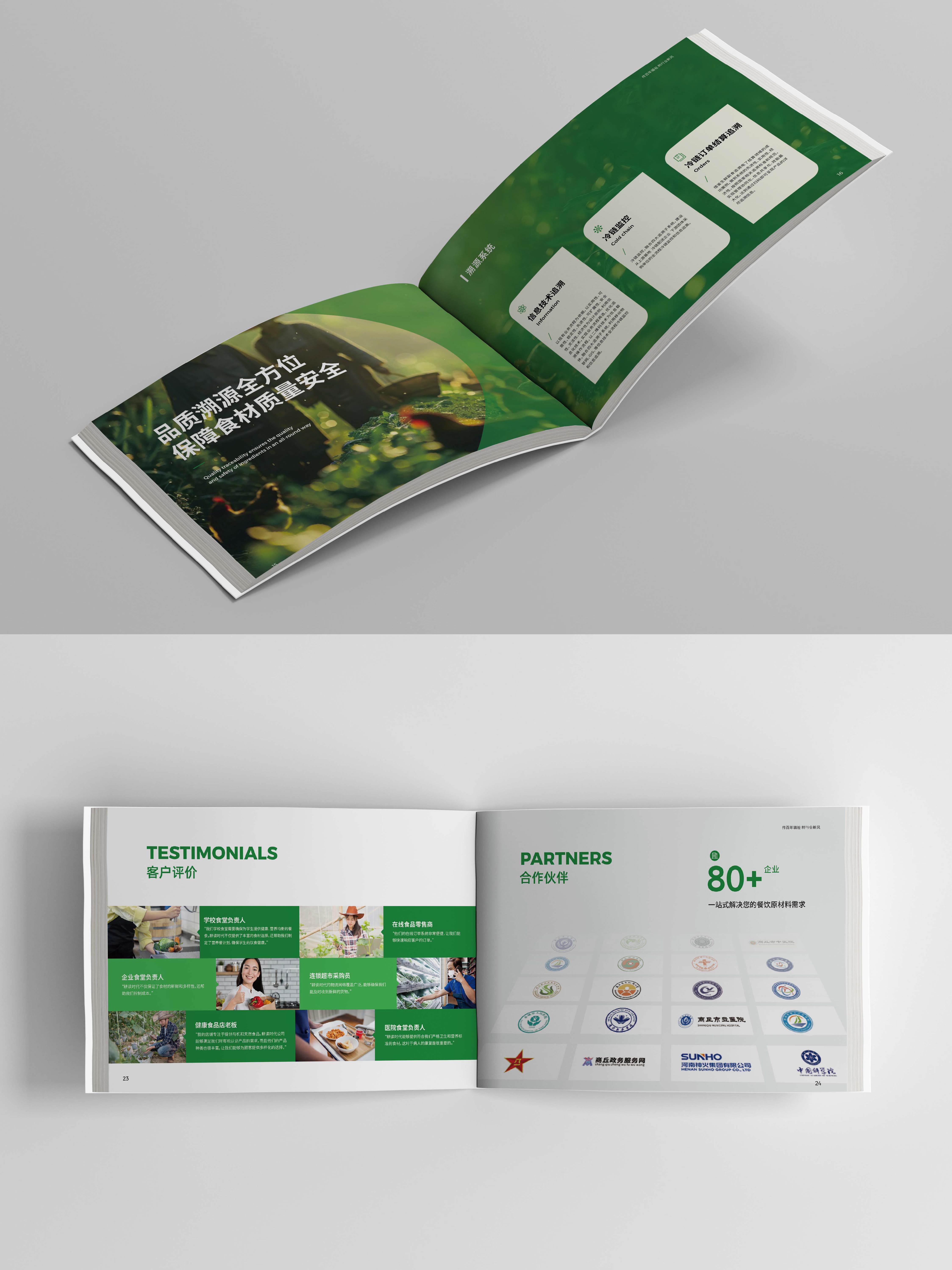 宣传册设计公司时,首先聚焦的便是其深厚的发展底蕴。翻开宣传册的开篇,商丘310农产品批发市场的老照片与如今现代化的企业总部形成鲜明对比,直观展现了耕读时代的成长轨迹。而这背后,是公司与商丘农产品中心批发市场、纳斯达克上市企业物农网、中科院863药食同源研发中心等行业顶尖力量的深度合作。圭谷设计通过可视化的合作网络图,将耕读时代的产业资源优势清晰呈现,让读者一眼便能读懂其在健康产业领域的核心竞争力。