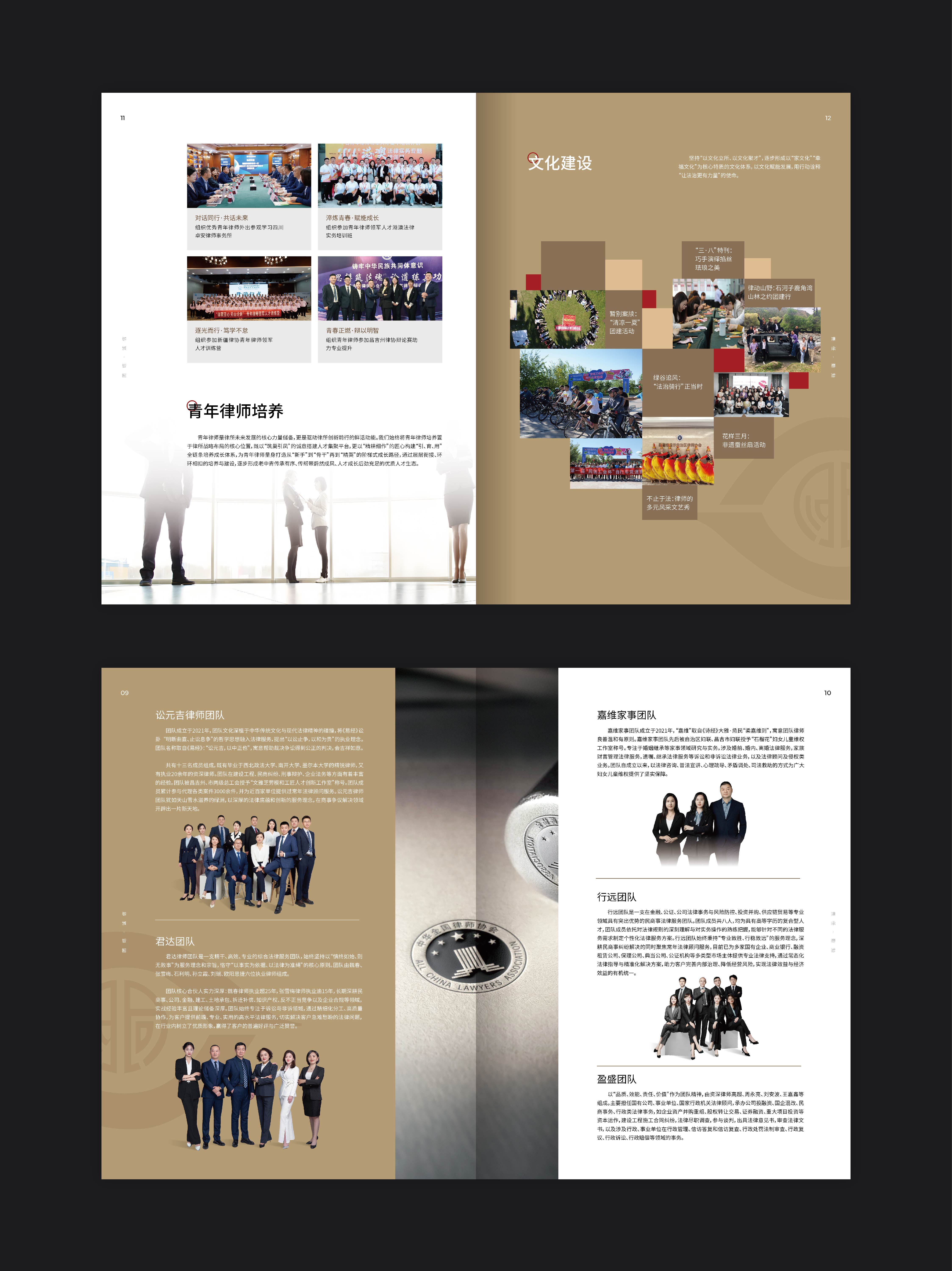 圭谷设计在新疆宣传册设计创作中,将九大团队的专业特色与经典案例进行可视化呈现。通过图文并茂的形式,让每一个团队的优势与成果跃然纸上:从政府机构的依法行政,到国企的合规运营,再到本土龙头企业的风险防控,近200余家顾问单位的选择,是对同创律所专业能力的最高认可。宣传册中,一张张团队协作的照片、一份份胜诉判决的剪影,不仅记录了律所的发展轨迹,更向社会传递着同创律所推动新疆法治化进程的坚定决心。
